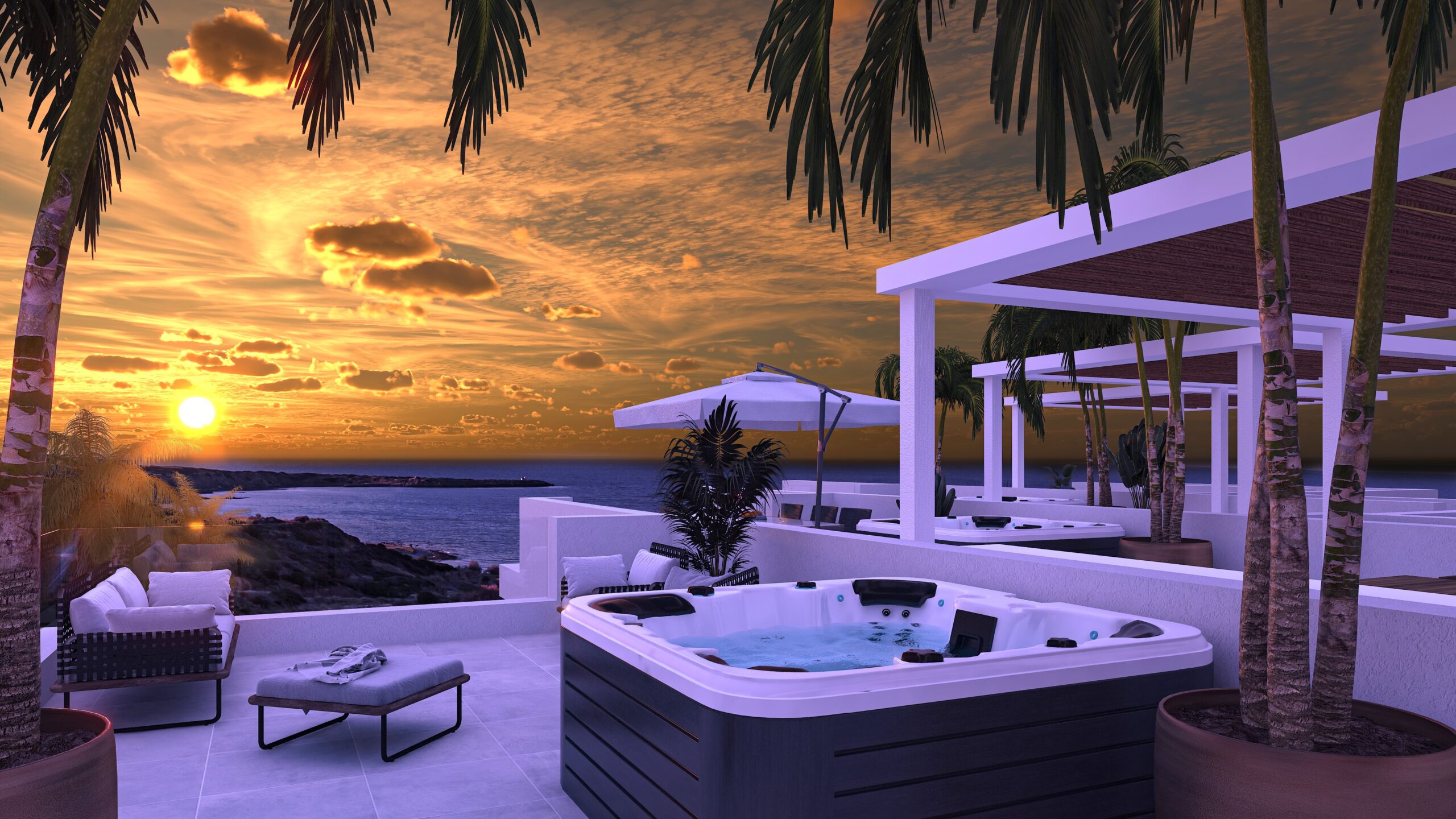 Dejablue Sunset bestaat uit 14 appartementen: allemaal met ononderbroken zeezicht en gericht op de zonsondergang. Vanaf je balkon of (dak)terras genieten van een schitterende zonsondergang... Is dat niet de ultieme vakantiebeleving?